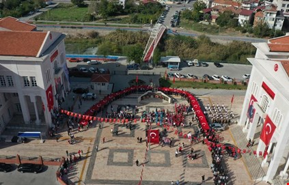 Atatürk Ortaokulu öğrencisi Osman Buhuroğlu “Bugün” adlı şiiri okudu. Kutlama