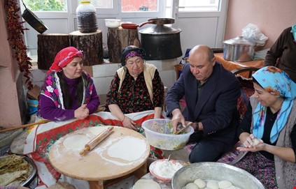 geçerken çekimlerde Başkan Otgöz gözleme hamuru açıp pişirdi.