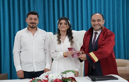seçilen B. Önder Akdenizli, göreve başlamasının ardından ilk nikah akdini