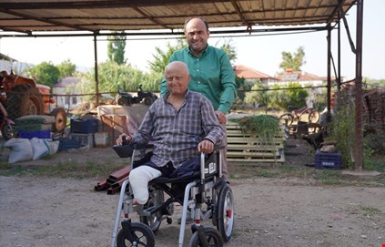 Başkan Akdenizli, Eşen Mahallesi’nde annesiyle yaşayan, şeker hastalığı nedeniyle iki ayağı kesilen bedensel engelli Hilmi Kırlangıç’ın akülü sandalye talebini geri çevirmedi.