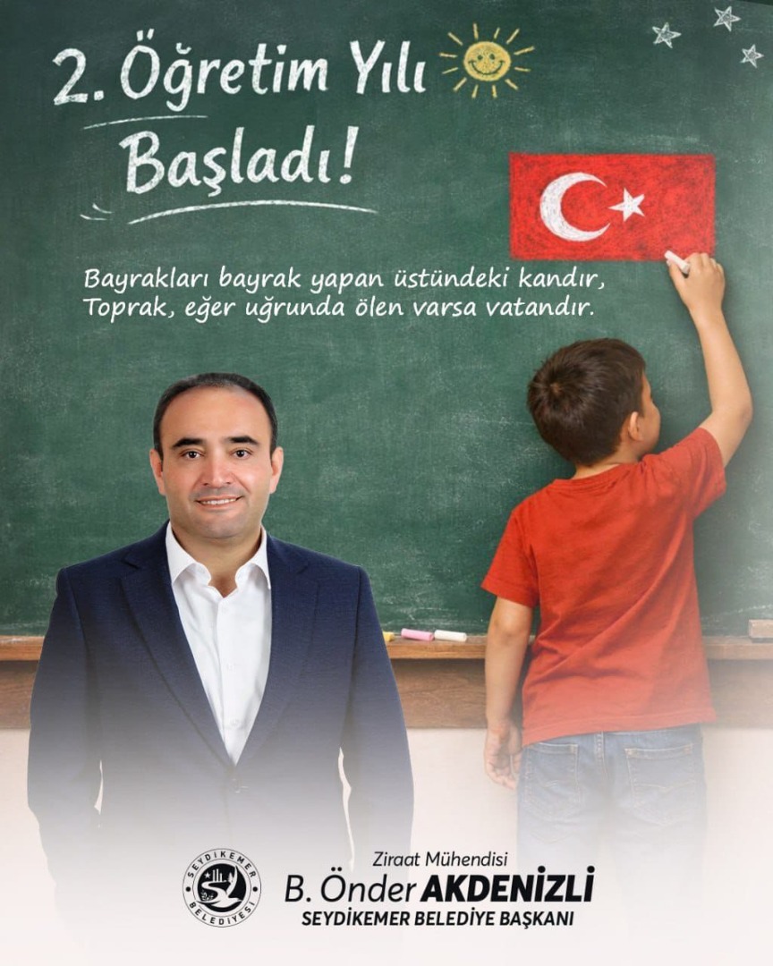 İkinci dönemin ilk gününde Seydikemer Belediye Başkanı B. Önder Akdenizli, sosyal medya hesabından yaptığı paylaşımla öğrenci, öğretmen ve velilere başarı dileklerini ileterek yeni dönemin hayırlı olmasını temenni etti. Başkan Akdenizli, paylaşımında Türk bayrağına yer verirken, milli birlik ve vatan sevgisine vurgu yapan şu sözleri de paylaştı: