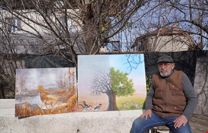 atölyesinde resimleri çizen Başarır, satıştan elde edeceği geliri depremzedeler