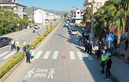 Etkinlikte öğrenciler; ‘Trafikte Yayalara Saygı!’, ‘Trafik Kurallarına Uymak Medeniyettir, Çözüm Sendedir’, ‘Dur, Yolda Ben de Varım!” gibi uyarıcı pankartlar taşıyarak yaya önceliğine dikkat çektiler. Öğrencilerden bazıları düdük çalarak trafikte seyir halinde olan araçları durdurup bilgilendirici broşür dağıttılar. Öğrenciler ayrıca Kaymakam Yıldız Büyüker, Belediye Başkan Yardımcıları Mustafa Karakuş, Mustafa Ali Türkan, İlçe Emniyet Müdürü Muzaffer Yüceur, İlçe Milli Eğitim Müdürü Ferah San ve trafik ekipleri ile trafik ışıklarının olmadığı noktalarda araçları durdurup yaya geçidini kullanarak yolun karşısına geçtiler.