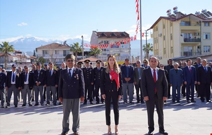 Tören, Seydikemer Belediyesi ve Seydikemer Kaymakamlığı önündeki Atatürk Anıtına çelenk sunumuyla başladı. Ardından saygı duruşunda bulunulup İstiklal Marşı söylendi. Törende günün anlam ve önemini anlatan konuşmayı Fethiye Muharip Gaziler ve Şehit Aileleri Yardımlaşma ve Dayanışma Derneği Başkan Yardımcısı Nazmi Toraman ve Jandarma Astsubay Çavuş İrfan Egribat yaptı.