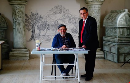 Mustafa Çorumlu’nun talebi üzerine kolları sıvayan Ressam ve Heykeltıraş