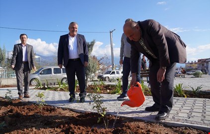 diyen Başkan Otgöz, daha sonra kendi elleriyle çiçek dikti.