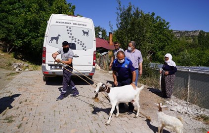 Belediye ekiplerinden yeni hayvanlarını teslim alan Hüseyin