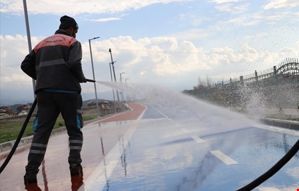 bu kapsamda şehir merkezi, bisiklet ve yürüyüş yolunda yıkama çalışması