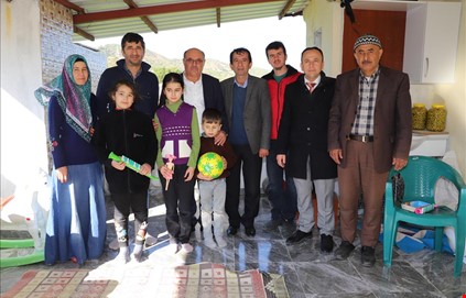 ve Sosyal Yardım İşleri Müdürü Kasım Gürbüz ile birlikte ziyaret ederek  söz konusu çiftin  görme engelli olan çocukları Ecrin ve Kerem Kalkanlı’ya
