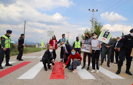 buldu. Trafikte yayaların geçiş üstünlüğüne dikkat çekmek amacıyla başlatılan ‘Yayalar Kırmızı Çizgimiz’ projesi