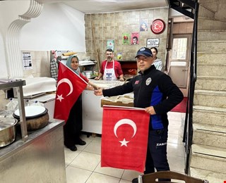 Zabıta ekiplerinin de katılımıyla gerçekleştirilen dağıtım sırasında esnaflar ve vatandaşlar, Türk Bayrağını iş yerlerine ve evlerine asarak birlik ve beraberlik mesajı verdi. İlçe genelinde büyük takdir toplayan etkinlik, milli duyguların güçlü bir şekilde ortaya konmasına vesile oldu.
