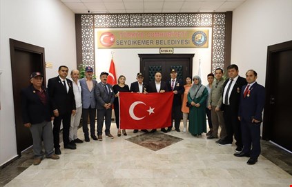 Fethiye Muharip Gaziler ve Şehit Aileleri Yardımlaşma ve Dayanışma Derneği Başkanı Namık Ünal ziyaret sırasında, Cumhuriyetimizin 100. Yılı dolayısıyla Seydikemer Belediye Başkanı B. Önder Akdenizli’ye Ay Yıldızlı Türk bayrağı hediye etti. Bu anlamlı hediye karşısında duygulanan Başkan Akdenizli; “Vatanımızın her karış toprağını canını siper ederek koruyan şehit ve gazilerimizden Allah razı olsun. Ülkemizi canı pahasına koruyan Gazilerimizden böylesine anlamlı bir hediyeye layık görülme, beni son derece gururlandırdı. Şanlı bayrağımızın özgürce ülkemizde dalgalanması için her Türk evladı, Atalarımızın emanetine sahip çıkmaya devam edecektir” ifadelerini kullandı.