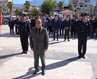 Tören; Seydikemer Kaymakamlığı, Seydikemer Belediyesi ve Seydikemer Gaziler ve Şehit Aileleri Derneği’nin çelenginin Atatürk Anıtına koyulması ile başladı. Çelenk sunma töreninin ardından bir dakikalık saygı duruşunda bulunulup İstiklal Marşımız okundu.