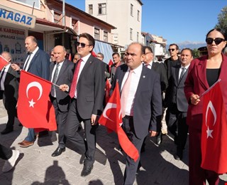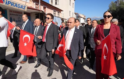 Protokol üyeleri de, ellerinde Türk bayraklarıyla bando takımı eşliğinde yürüyerek vatandaşlara coşku dolu anlar yaşattı.