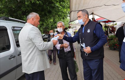 pazarlarda denetlemelerde bulunarak maske dağıtımı gerçekleştirdi. Pazar