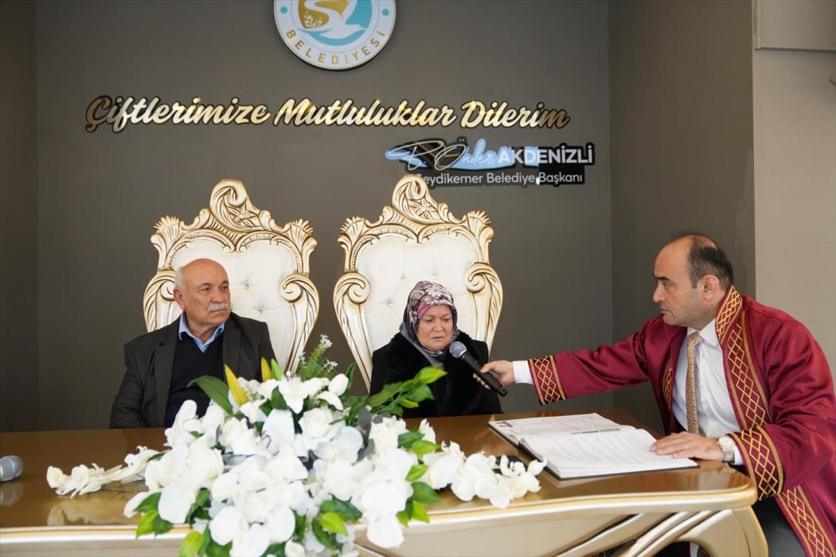Seydikemer Belediyesi Nikâh Salonu’nda düzenlenen törende nikâh akdini Seydikemer Belediye Başkanı B. Önder Akdenizli gerçekleştirdi. Emine Teyze ve Yusuf Amca’nın mutlulukları yüzlerinden okunurken, nikâh anında duygu dolu anlar yaşandı. Törene katılanlar da bu anlamlı güne tanıklık ederek çiftin sevincine ortak oldu.