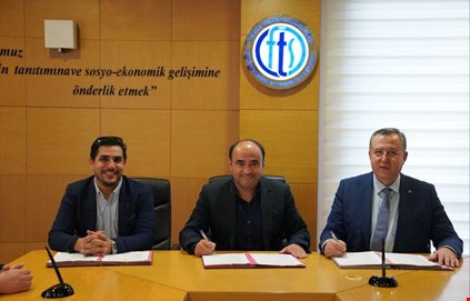 işbirliği sözleşmesini FTSO Toplantı Salonunda; Seydikemer Belediye Başkanı B.