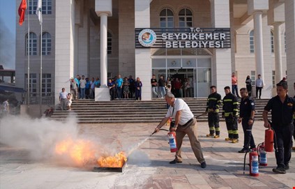 Seydikemer Belediyesi ve Muğla Büyükşehir Belediyesi İtfaiye Daire Başkanlığı iş birliğiyle belediye personeline yönelik yangın tatbikatı gerçekleştirildi. Seydikemer Belediyesi Konferans salonunda gerçekleşen eğitimde belediye çalışanlarına yangın öncesi, yangın anında ve sonrasında yapılması gereken bilgiler aktarıldı.