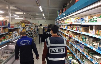 ekipleriyle birlikte, zincir marketlerde stok denetimi yaptı.