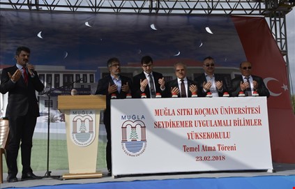 Muğla Sıtkı Koçman Üniversitesi'ne (MSKÜ) bağlı Seydikemer ilçesine açılan 4 yıllık Uygulamalı Bilimler Yüksekokulu'nun B Bloğunun temel atma töreni yoğun bir katılımla gerçekleştirildi. Temel atma törenine AK Parti Muğla Milletvekilleri Hasan Özyer ve Nihat Öztürk, Seydikemer Kaymakamı Haktan Gökçekuyu, Seydikemer Belediye Başkanı Yakup Otgöz, Muğla Sıtkı Koçman Üniversitesi (MSKÜ) Rektörü Mansur Harmandar, Seydikemer Uygulamalı Bilimler Yüksek Okulu Müdürü Yrd. Doç. Dr. Eyüp Akçetin, Seydikemer Ak Parti İlçe Başkanı Salih Gümüş, Fethiye Ak Parti İlçe Başkanı Kadir Sarıhan, MHP Seydikemer İlçe Başkanı Yusuf Bağırcı, CHP Seydikemer İlçe Başkanı Nalan Büyükçoban, İyi Parti Seydikemer İlçe Başkanı Sevgi Nurten Güler, Seydikemer Muhtarlar Derneği Başkanı Mehmet Güven, Sivil Toplum Kuruluşu başkan ve üyeleri ile öğretim görevlileri ve çok sayıda davetli katıldı.